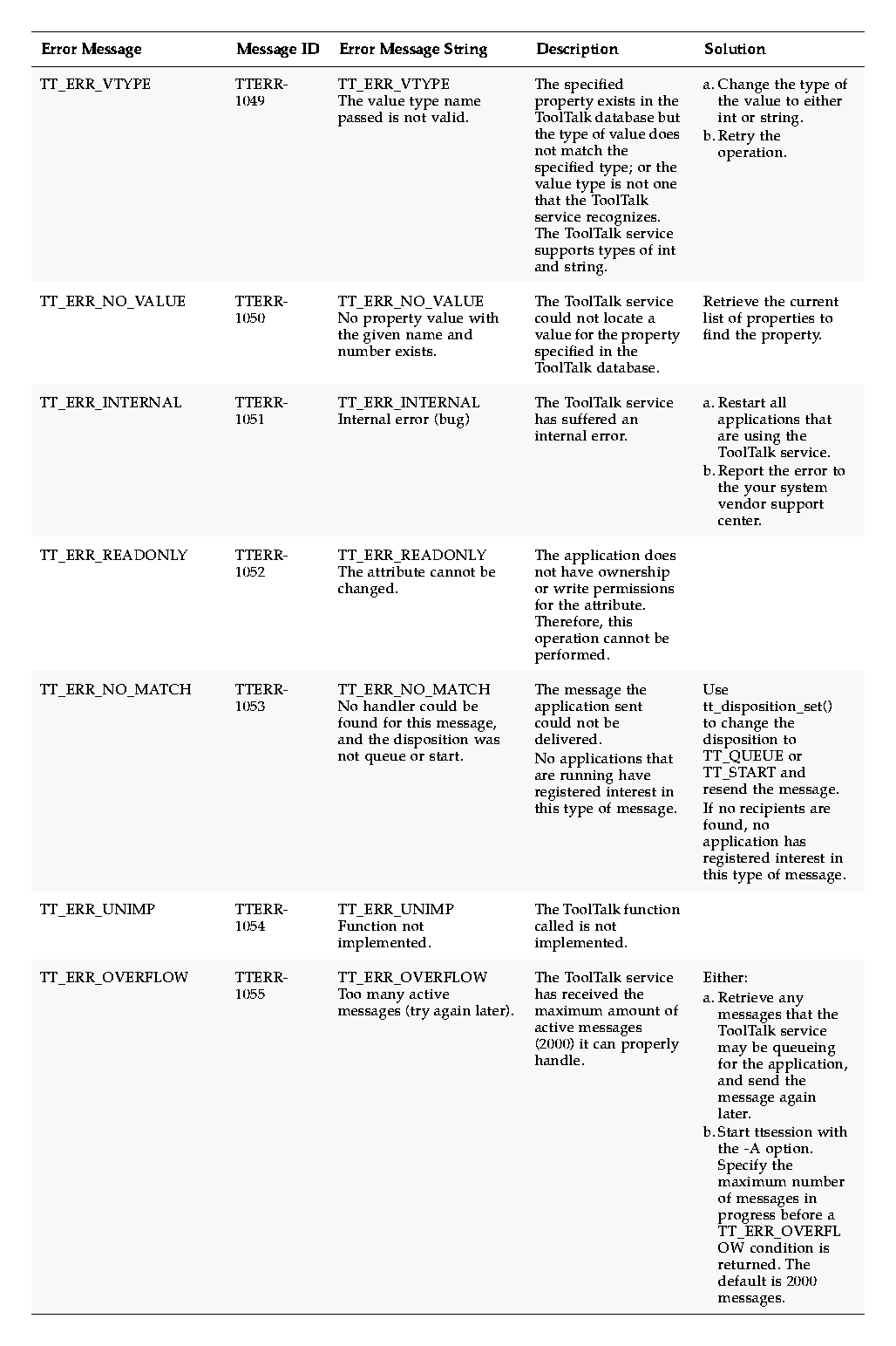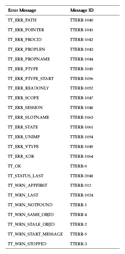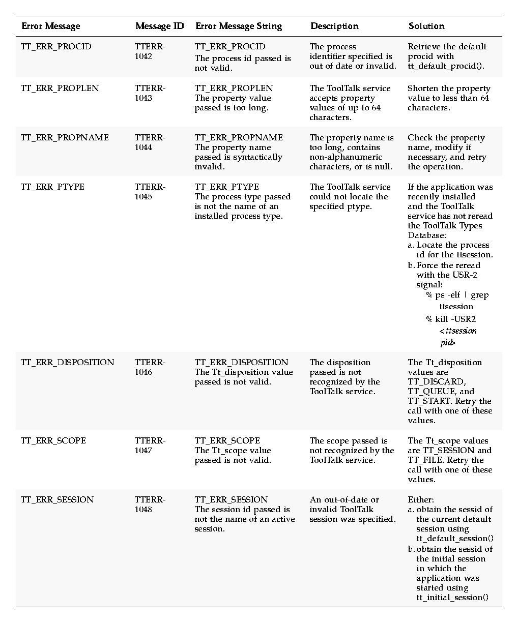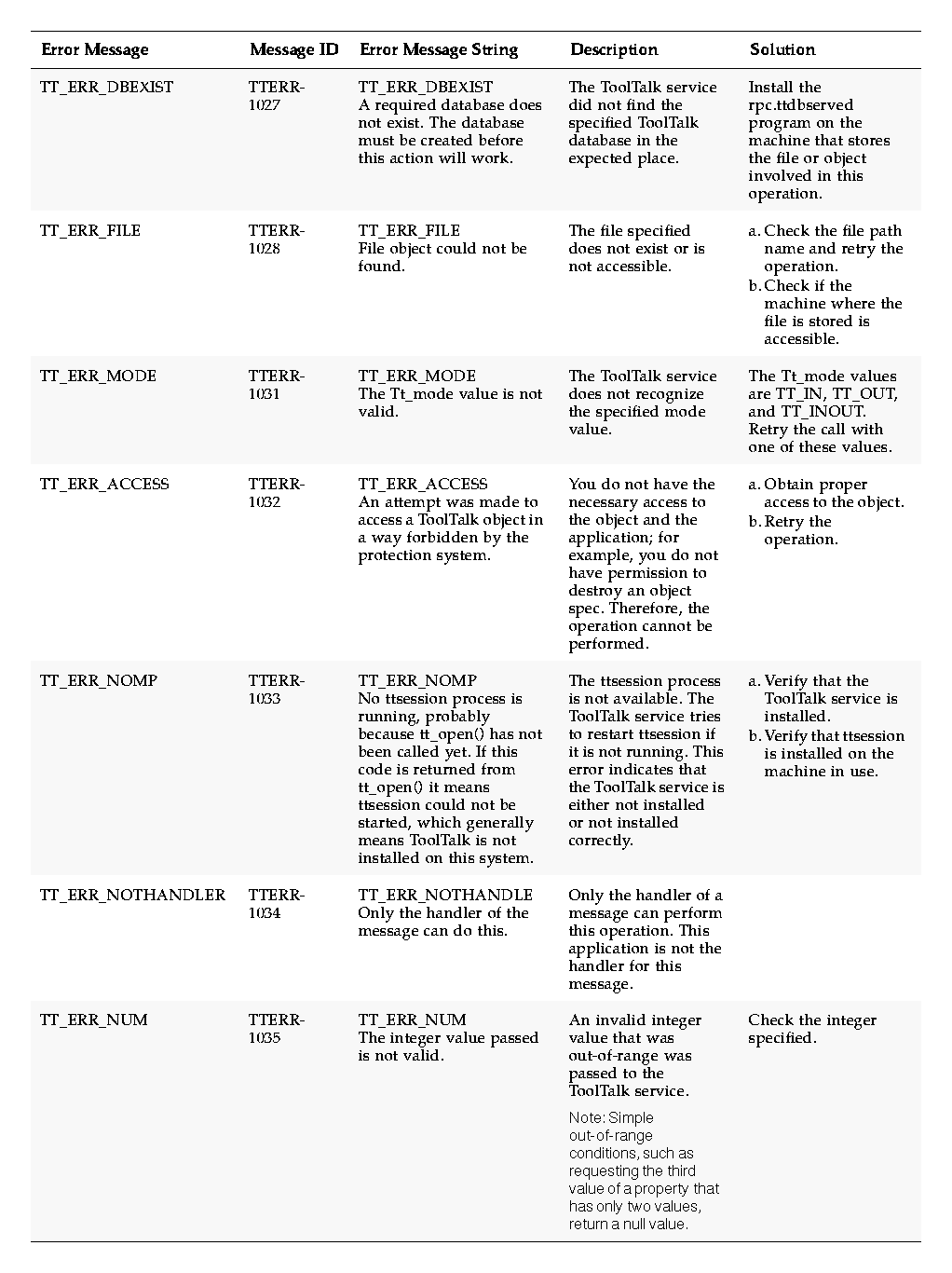 Table 7-1 Alphabetical List of ToolTalk Error Messages (continued)