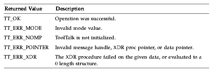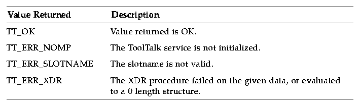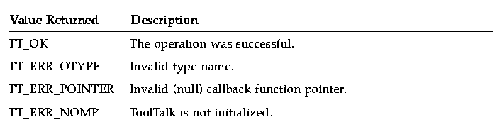 Note: To make the object a permanent ToolTalk item or visible to other processes, the creating process must call tt_spec_write().