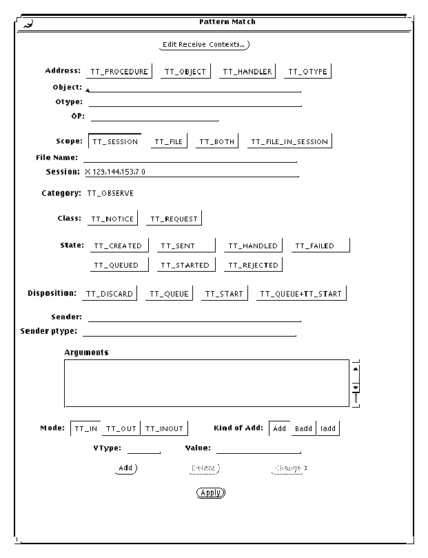 - Press this button to popup a panel which allows you to compose and register ToolTalk patterns.