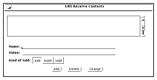 - Press this button to add, change, and delete receive message contexts in patterns. The popup window displayed, shown in Figure 5-5, allows you to edit contexts to be registered with your patterns.