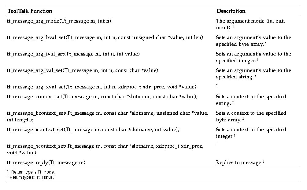 Table 11-2 lists the ToolTalk functions you use to reply to requests.