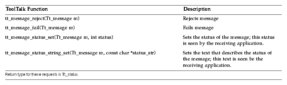 If you have examined the request and your application is not currently able to handle the request, you can use the ToolTalk functions listed in Table 11-3 to reject or fail a request.