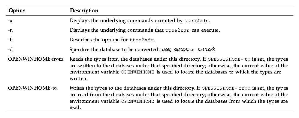 ttce2xdr [ -xnh ] -d network [ OPENWINHOME-from [ OPENWINHOME-to ]]